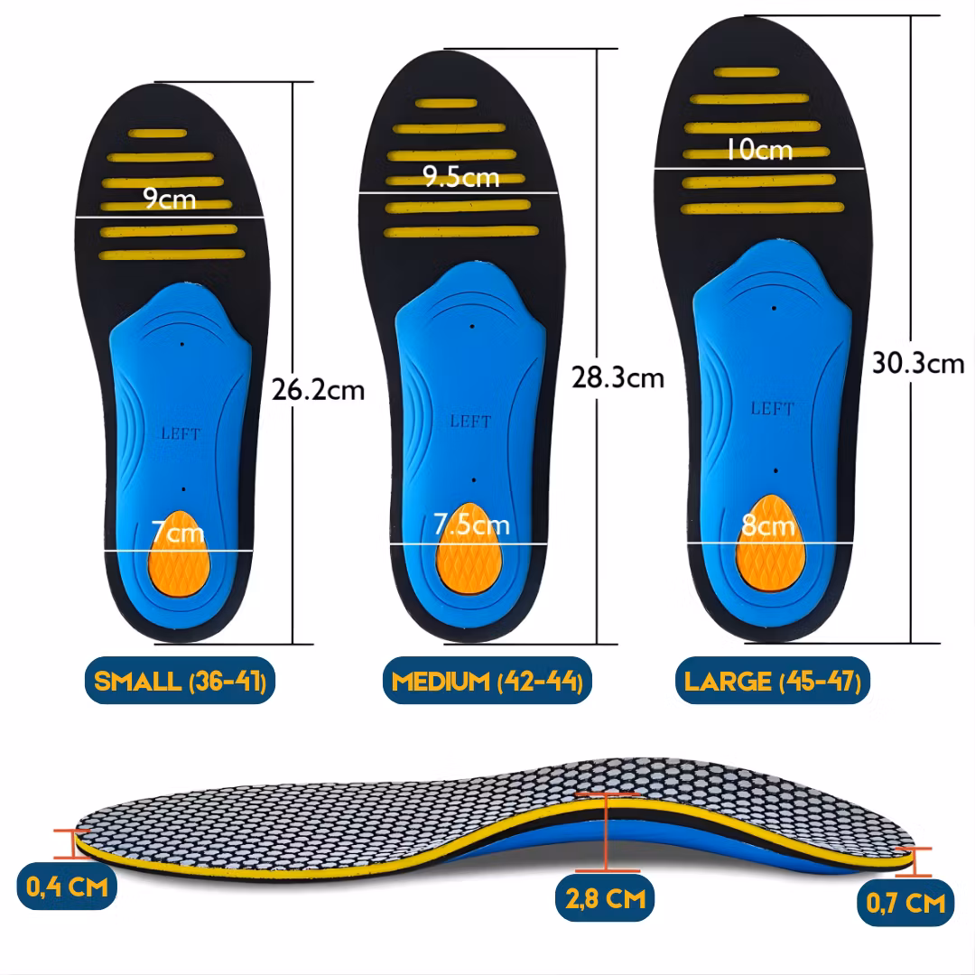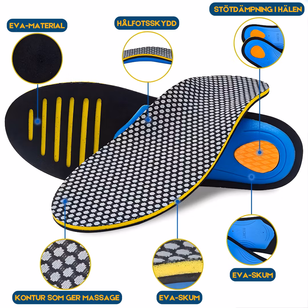 - Inläggssulorna är speciellt utformade för idrott och sport, och passar bland annat vid löpning och vid snabba bollsporter.