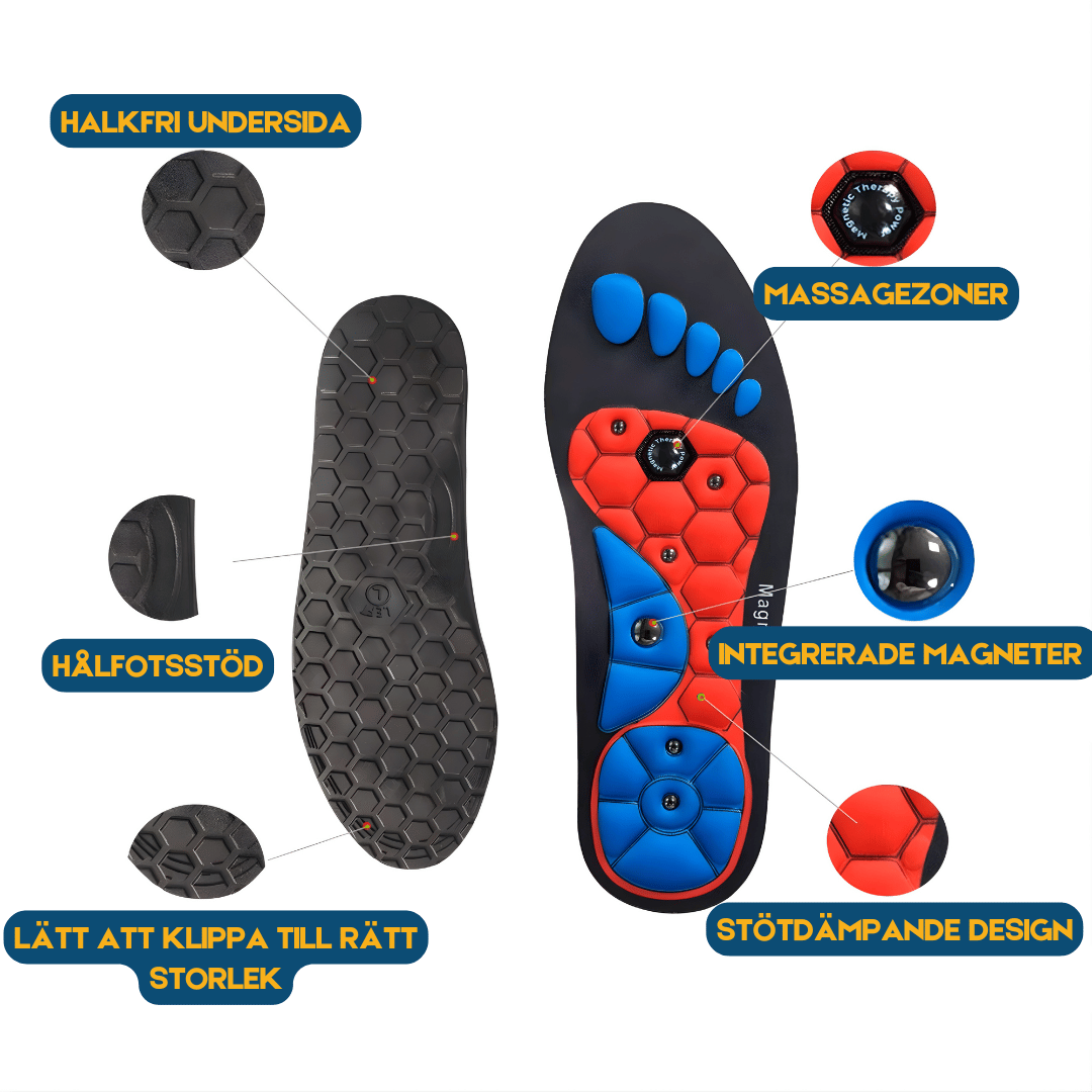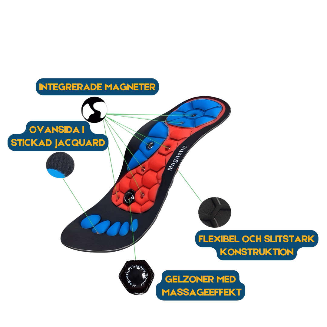 - Om du har på dig dem dagligen får du minimerad risk för smärta i fotvalv, fötter och ben.